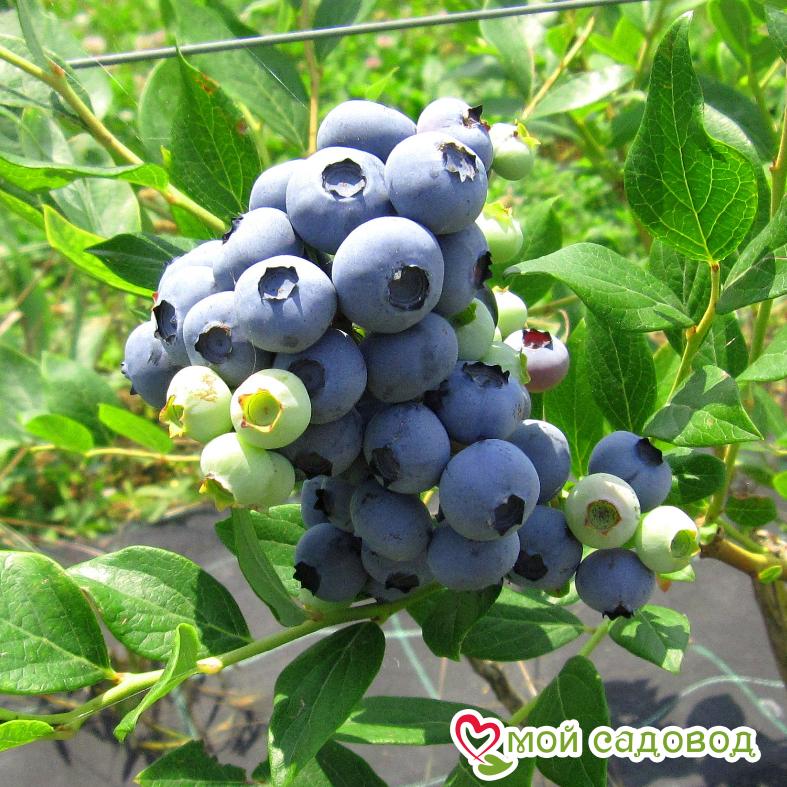 ☀️ Высаживать саженцы голубики с закрытой корневой системой можно на протяжении всего вегетационного периода (весна-лето-осень). Посадку голубики весной в открытый грунт следует проводить после исчезновения угрозы возвратных заморозков, когда воздух прогреется до 10-15⁰С, но до распускания почек (в апреле-мае). Таким образом, саженец будет иметь достаточно времени, чтобы укорениться и адаптироваться к новым условиям. Осенью к посадочным работам приступают в конце сентября-начале октября.. после того, как растение закончит вегетацию и останется без листьев. При этом оно будет иметь в своем распоряжении 3-4 недели до устойчивых морозов для укоренения. Сорт Чандлер или Чендлер (Chandler) был выведен в 1994 году канадскими селекционерами. Куст — высокорослый (до 1,6 м), слабораскидистый. Ягоды — крупные, синего цвета, с восковым налётом и аккуратным рубчиком. Плоды достигают массы 2,5–5 г, 2-3 сантиметров в диаметре, слегка приплюснутые с торцов, напоминают пуговицу. У них сладкий, приятный вкус и светлая, плотная мякоть. С куста можно собрать до 5–7 кг голубики. Сорт отличается повышенной морозоустойчивостью, считается одним из лучших для выращивания в средней полосе России. В суровые зимы выдерживает температуры до -35°С. Аккуратная форма куста позволяет использовать Чандлер и в качестве декоративного кустарника на участках, оформленных в природном стиле. Голубика — необыкновенно полезная ягода, синего цвета, с характерным налётом. Её считают эффективным лечебно-профилактическим средством, помогающим при заболеваниях сердца, глаз, пищеварительной системы и др. Выращивают ягоду как промышленным способом, так и на приусадебных участках. Среди множества сортов особой популярностью пользуются крупноплодные разновидности, к которым и относится сорт Чандлер. ПОСАДКА Перед посадкой полейте растение в контейнере и дайте ему постоять, чтобы можно было легко вынуть саженец из контейнера не повредив корневую систему. Подготовьте посадочную яму глубиной и шириной примерно 0,5 м. Добавьте в неё кислую песчано-земляную смесь (лучше если это будет специализированный грунт с повышенной кислотностью рН) и перемешайте с почвой, вынутой из ямки. Можно улучшить структуру почвы, добавив кислого торфа. Посадите растение так, чтобы оно оказалось на несколько сантиметров ниже, чем оно сидело в горшке. Слегка уплотните землю вокруг саженца и еще раз полейте как следует. Для предотвращения испарения влаги покройте почву слоем мульчи (опилки, кора) толщиной 5-8 см.  Это позволит решить и ещё ряд проблем. Во-первых, слой мульчи позволит избавиться от сорняков, во-вторых, отрегулирует водно-воздушный и температурный режим верхнего слоя почвы (т.е. почва не пересыхает и не перегревается), в третьих, он улучшит освещённость куста, в четвёртых, поможет бороться с болезнями.