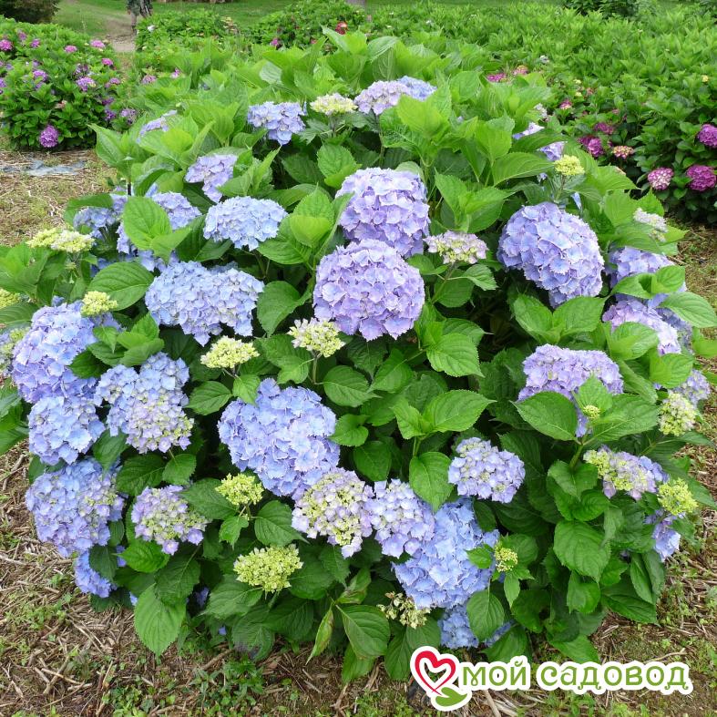 Гортензия крупнолистовая — красивый декоративный кустарник с прямостоячими побегами. Листья простые, яйцевидные, ярко-зеленые. Цветки крупные, шаровидные, до 20—25 см в диаметре, образуются на концах побегов. Цветет в июле-августе. В зависимости от кислотности почв можно менять окраску цветков. Растет быстро, теплолюбива, требовательна к почве и влаге, не переносит извести. Мирится с небольшим затенением, маломорозостойка (до -18 град). Требует укрытия на зиму.